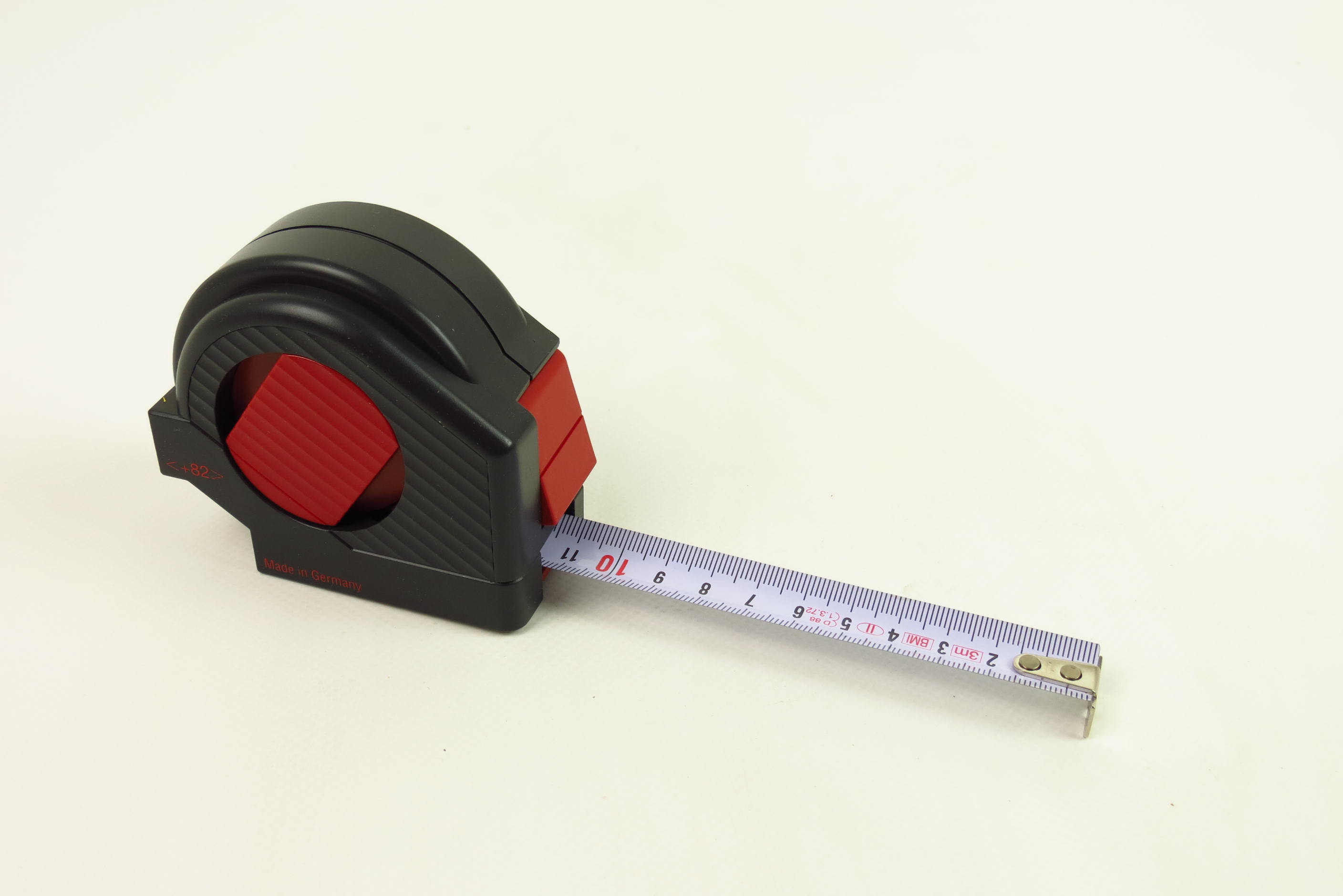 Band 19mm mit hoher Standfestigkeit, hochwertiges Kunststoffgehäuse, automatischer Bandrücklauf, Feststeller